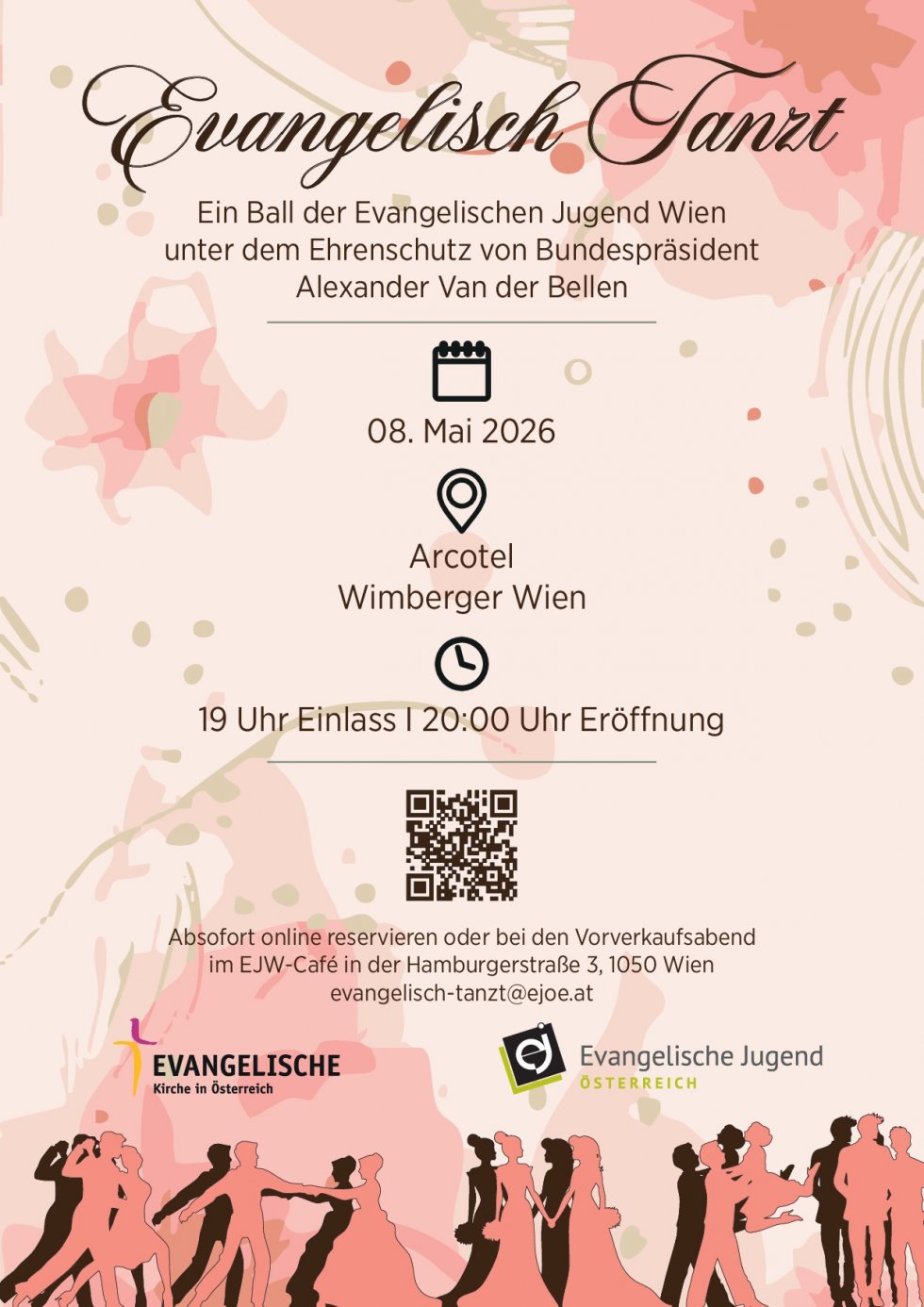 Die Evangelische Jugend Wien lädt herzlich zu „Evangelisch Tanzt“ ein. Ein festlicher Ballabend für die evangelische Gemeinschaft aus ganz Österreich. Neben Tanz, Musik und eleganter Atmosphäre steht vor allem eines im Mittelpunkt: Begegnung und Austausch über Gemeinde- und Generationengrenzen hinweg. Ein Abend, der verbindet und Gemeinschaft lebendig macht.