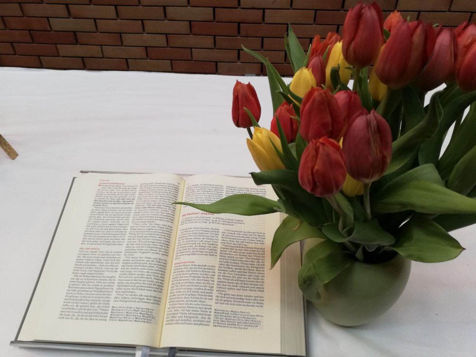 Wir treffen uns in der Auferstehungskirche und setzen uns dann im Kirchenfoyer oder im Pfarrbüro zusammen.