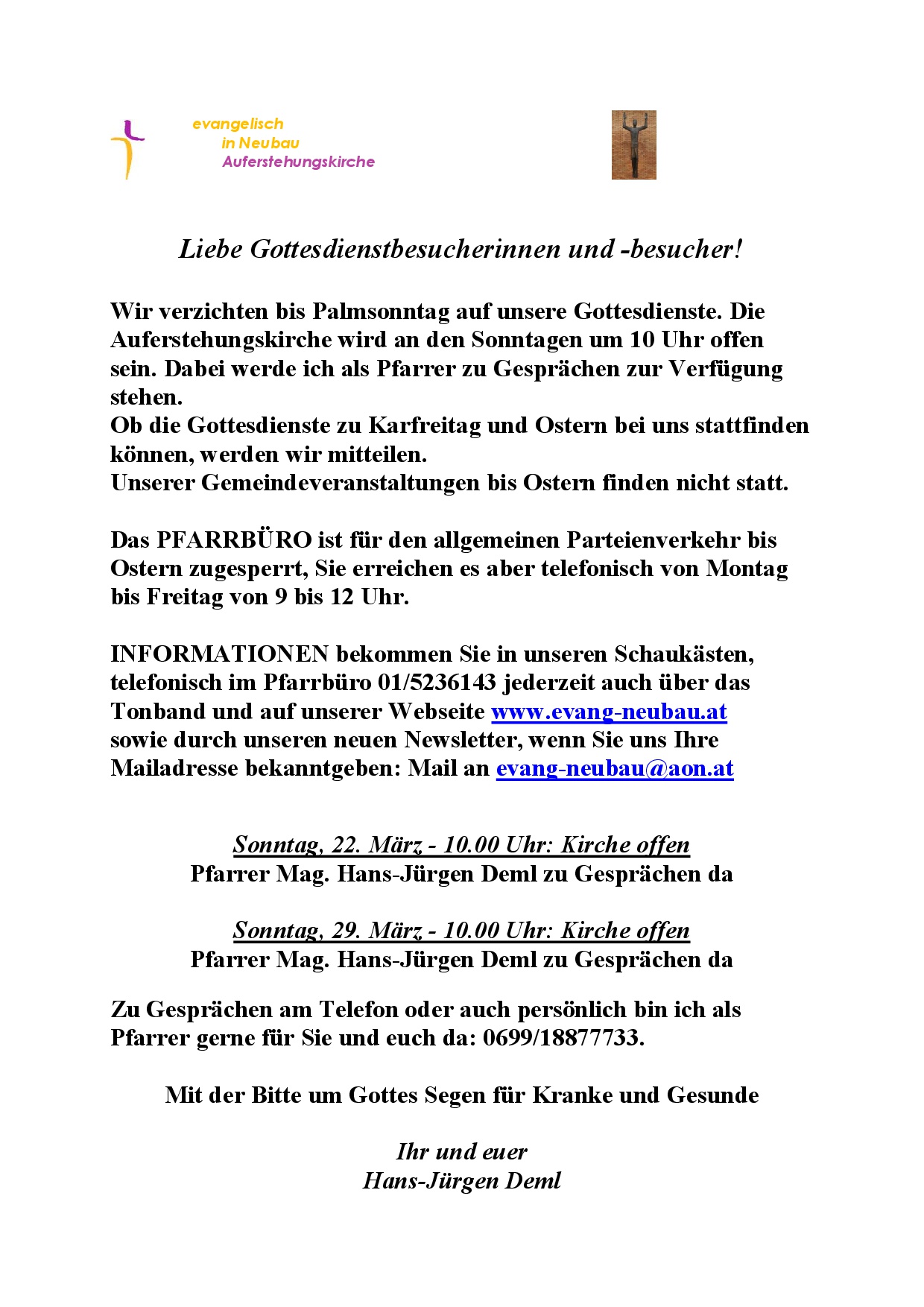 - Wir, als Evangelische Gemeinde A.B. Neubau/Fünfhaus, nehmen die Heilige Schrift, das Zeugnis des Wortes Gottes, ernst.