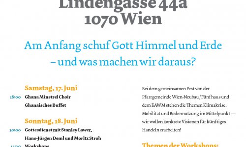 Sonntag, 18. Juni 2023 - 10:00Schöpfungs- und Misssionsfest Auferstehungskirche, Lindengasse 44a, 1070 Wien
