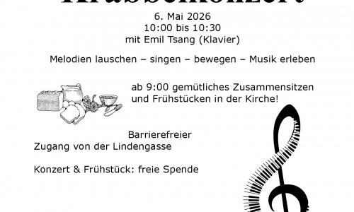 Addresse: AuferstehungskircheLindengasse 44a1070 WienMittwoch, 6 Mai 2026 - 9:00vormittagsKrabbelkonzert