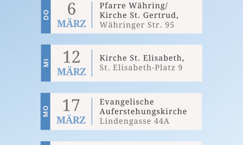 Addresse: AuferstehungskircheLindengasse 44a1070 WienMittwoch, 5 März 2025 - 4:30nachmittagsOffene Kirche